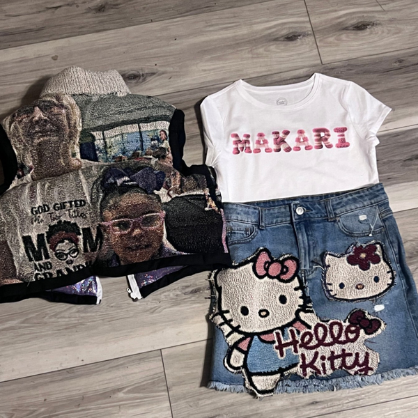 All things tapestry, can be made into shirts, outfits, onesies, pillows, purses etc. Please type size and description below, TEXT PICTURES TO 501-291-1232 OR EMAIL THEM to info@kokozkustomz.com